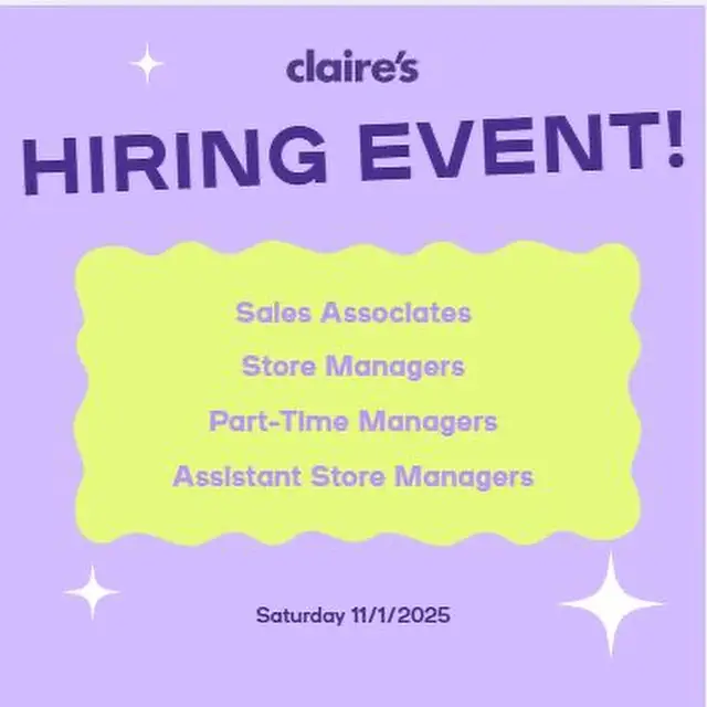 Find your next job at Claire's! Stop by the store this Saturday.